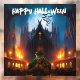 Haunted House with Creepy Monster Window Cling