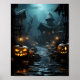 Embrace the essence of Halloween with our captivating poster design, "Haunted House With Trees And Pumkins Around." This artwork transports you to a world where the veil between reality and the supernatural is at its thinnest, and the night is alive with mysterious possibilities. The poster captures the essence of Halloween with its rich colours and intricate design. It invites you to explore the mysteries of the night, to wander through the enchanted forest, and to peer into the windows of the haunted house to catch a glimpse of the spectral inhabitants within. Hang this poster on your wall and create an atmosphere of eerie enchantment. Whether you're a Halloween enthusiast, a lover of the supernatural, or simply someone who appreciates the beauty of a well-crafted scene, "Haunted House With Trees And Pumkins Around" will draw you into its world and keep you captivated for years to come.