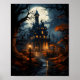 Haunted House With Trees Around Halloween Night Poster