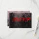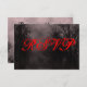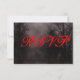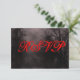 A custom response RSVP card template with grungy letters on a spooky Halloween sky with misty trees along a dark haunted road, gothic ravens and a cloudy full moon in a bloody red mist. Customise It to change fonts, add text and more, even save your design for later.