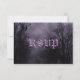 A custom response RSVP card template with grungy script and traditional gothic letters on a spooky Halloween sky with misty trees along a dark haunted road, ravens and a cloudy full moon and a purple tint. Click Customise It to change fonts, sizing and more, even save your design for later.