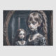 This chilling artwork depicts a hauntingly eerie scene where a young girl stands before a mirror, cradling a spectral doll in her arms. The reflection in the mirror reveals a disquieting juxtaposition of innocence and dread. The girl’s gaze is unsettling, filled with an unnerving calm that contrasts sharply with the doll's ghostly presence. The scene is enveloped in shadowy tones and subtle, eerie details that heighten the sense of unease. The mirror, acting as a portal to a realm of unsettling mystery, captures a moment of haunting stillness where the boundary between reality and the supernatural blurs.