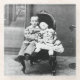 A haunting and emotionally powerful piece of Victorian-era post-mortem photography, capturing a young boy with his deceased sibling in a somber studio portrait. Once a common practice to memorialize loved ones, this striking image reflects the customs, grief, and aesthetics of a bygone time — ideal for lovers of dark vintage history and macabre art.