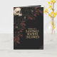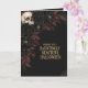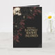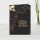 A gothic-style Halloween card featuring a skull, dark black roses, and deep burgundy leaves on a black background, with the phrase "Wishing You a Hauntingly Beautiful Halloween" in gold lettering.