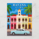 A Havana postcard illustration capturing the charm of Cuba’s capital city, with a pastel-coloured retro car and historic Spanish colonial buildings. Perfect for travelers, collectors, or fans of vintage Cuba.