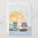 A vibrant and nostalgic illustration of Havana, Cuba, featuring colourful colonial buildings, the iconic Capitolio, and a classic vintage car. Set against a dreamy sunset with birds in flight, the design captures the lively spirit and timeless charm of the city.