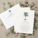 Island chic wedding guest information card features a vintage etched style palm tree illustration in blackened hunter green. Replace the sample text with the key details of your wedding celebration.