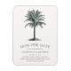 Planning a tropical, beachside, Hawaiian or destination wedding? Announce your date with our island vintage save the date magnets featuring an etched style tropical palm tree illustration in blackened hunter green. Add your wedding details in dark charcoal grey lettering; custom text templates provide space for your names, wedding date, location and wedding website.