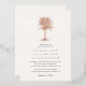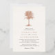 Vintage beach style wedding invitation features an etched palm tree illustration in radiant rose gold foil on a pale off-white ivory background, atop your wedding details in charcoal grey for a chic coastal look.