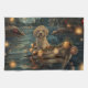 Set sail into the magic of the holiday season with this beautifully detailed illustration, showcasing a proud dog sitting in a festively decorated boat, gliding across a serene Christmas lake. The twinkling lights from nearby pine trees reflect off the water, casting a warm, festive glow that enhances the cosy ambiance. Ornaments dangle from the boat's sides, while glowing lanterns light the way, creating a scene that captures the true essence of Christmas warmth and joy. This nostalgic artwork brings a touch of holiday magic to any space, perfect for those who cherish the spirit of the season.