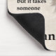 The product itself is good quality and I like the simplistic elegant design. The only criticism I have is that it's not really accurately represented by the picture provided. I thought that the mousepad would be a non-porous or laminate surface and as such the gold writing would actually shine against the soft pink. However the design is printed on a thick fabric surface, so the gold colour is just the shade of gold but doesn't stand out from the pink background. (See picture)