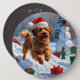 Havanese Running in Snow with Christmas Hat 6 Cm Round Badge