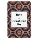 A flexible magnet with a repeating pattern of decorative ornate elements in flower, star and sun shapes.