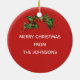 These whimsical penguins are back and ready to celebrate the holiday season. They're featured on this ceramic ornament toasting with their favourite beverage. Set on a red background, with a sprig of green holly near the top. The text on the bottom reads "HAVE A CLASSY CHRISTMAS!" and it can be customised or removed. The back of the ornament is red with the green holly near the top. Below the holly there is a text box where you can add a personal touch with your own message.