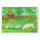 A pretty greeting card decorated with a watercolor painting of farm animals including sheep, lambs and chickens with a barn and fence line. You can change the message to fit your needs.