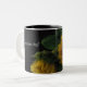 Sunflowers and green foliage. Black background. "Have A Great Day" text on side of mug.