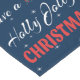 Have a Holly Jolly Christmas text design with stars, berries, candle and winter evergreen decoration on dark blue background