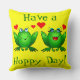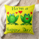 Have a Hoppy Day Cute Cartoon Frogs Cushion