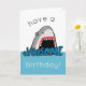 Funny birthday card with the pun "have a jawsome birthday" with an illustration of a shark with its big jaws open wide.