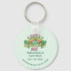 A keychain with a St. Patrick's Day themed image. A retro grunge style design which says: Have a lucky day. With a colourful rainbow behind. Words written in a fat rounded retro style vibe. Pink and green colours.