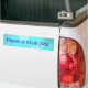 Wish people a nice day every time they read , "Have a nice day," printed on bumper stickers. The background is a mix of bubbles on a light blue aqua painting.