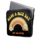 A pro-choice laptop sleeve with a retro snarky style! Rainbow, daisies and text in 70s retro colour palette. Text: Have a nice day. Not you SCOTUS.