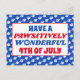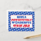 Introducing our charming design featuring a border of white paw prints on a vibrant blue background, creating a festive and patriotic atmosphere for your 4th of July celebrations. The white paw print border surrounds a clean white background that showcases the text "Have a pawsitively wonderful 4th of July" in bold blue and red colours. Adding a playful touch, the letter "o" in "wonderful" is cleverly replaced with a paw print.