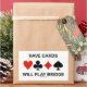Make others do a double-take with a dose of wry card player bridge humour with any of these gifts featuring the four card suits along with the saying "Have Cards Will Play Bridge". Memorable bridge saying gifts for any avid bridge player!
