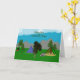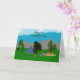 Cute summer camp greeting card for your summer camper. Colourful tents dot the landscape with fish cooking over a fire. Mountains in the background. I have left the inside b;lank so you can write your own message.