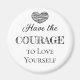 Inspirational quote, "Have the courage to love yourself". Black and white motivational affirmation.