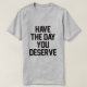 HAVE THE DAY YOUR DESERVE. BLESS YOUR HEART. KARMA. YOU GET WHAT YOU GIVE. INSTANT KARMA. HAVE A DAY. UNDERHANDED SALUTATION. #KARMA HAVETHEDAYYOUDESERVE HAVE A NICE DAY. REAP WHAT YOU SOW. BLESSYOURHEART. HILARIOUS SHIRT. SARCASTIC SLOGAN PHRASE. SARCASM. FACETIOUS. BYE FELECIA. FUNNY SALUTATION.