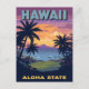 Hawaii Aloha State Vintage Sunset Palm Trees Postcard