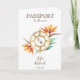 Modern and Colourful Floral Invitation Wedding Destination, like passport. Compass monogram crest on the front page, with strelitzia. Perfect design for your summer beach wedding. Add the QR code of your wedding website