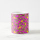 Colourful tropical mug featuring a bold pattern of Hawaiian beach names on signposts. Along with yellow Hibiscus flowers and palm leaves. On a girly pink background. Ideal for Hawaiians, for anybody who loves Hawaii, Hawaiian beach wedding, surfers...everyone!