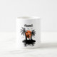 A coffee mug depicting a sunset on a Hawaii beach with palm trees. A welcome addition to any home in the Aloha State.