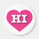 This magnet features a vibrant hot pink heart containing the bold, white, upper case letters HI, the official abbreviation for Hawaii, the aloha state.
