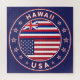 Badge of Hawaii with flag of Hawaii and flag of USA colors, rounded shape.