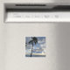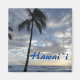 Hawaii magnet shows palm trees growing in the sand by the edge of the sea.