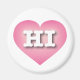 This magnet features a pink heart with a white-washed centre containing the bold, white, upper case letters HI, the official abbreviation for Hawaii, the aloha state.