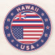 Badge of Hawaii with flag of Hawaii and flag of USA colours, rounded shape.