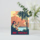 Hawaii tropic beach, woman playing guitar on coast postcard