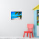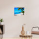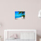 “On beach time.” Rewind back to memories of lazy, tropical beach days whenever you gaze at this Hawaii vacation poster of a lone palm tree on a sandy, crescent beach, with clear turquoise blue skies and water. Great for any room in your house!