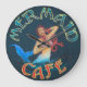 Hawaiian Art by C. Cabral: Mermaid Cafe Sign Large Clock