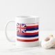 This mug design features the hawaiian flag on one side and a map of Hawaii on the other.