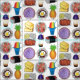 Fabric features an assortment of delicious Hawaiian foods, including: shave ice, poke, butter mochi , spam musubi, plate lunch, loco moco, halo halo, poi, and a tropical Hawaiian pineapple.