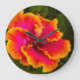 Hawaiian Fuchsia and Orange Hibiscus from Kauai Large Clock