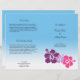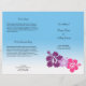 Create your own professional quality wedding programs with this easy to use bi-fold program template. This simple yet elegant program features a trio of Hawaiian hibiscus flowers on the cover. Inside text is set on a calm blue gradient background, just like the warm ocean of Hawaii. Simply replace sample text with your wedding information. Paper measure 8-1/2" x 11" You will need to fold programs into 8-1/2" x 5-1/2".