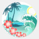 A beautiful Hawaiian Island Design featuring coconut trees, tsunami-style waves, hibiscus flowers, seabirds, sun, and an island in the background. Search for Makanahele to see my other designs.
