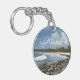 Acrylic keychain shown with a photo print of a beautiful hawaiian beach.
