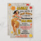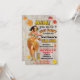 Super cool and retro Hawaiian Luau Bridal Shower Invitations with a vintage illustration of a beautiful hula girl welcoming you to a bridal shower. Fun typography, flowers on a weathered wood background.